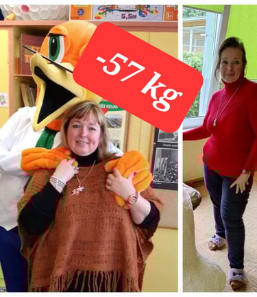 šiandien mano rezultatai yra mane džiuginantys . Jūsų pagalbos dėka per 1.5 metų numečiau 57 kg. Nuoširdžiai jums dėkoju. Jūs padėjote man pasitikėti savimi, atrasti save. Ačiū jums🌹🌹🌹,sveikatos, sėkmės jūsų darbe🥰😀😘. Dabar žinau, kur galėsiu kreiptis, jei man nepasiseks."