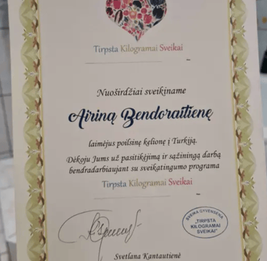 Svetlanai Kantautienei ir programai ,,TIRPSTA KILOGRAMAI SVEIKAI,, AIRINA BENDORAVIČIENĖ