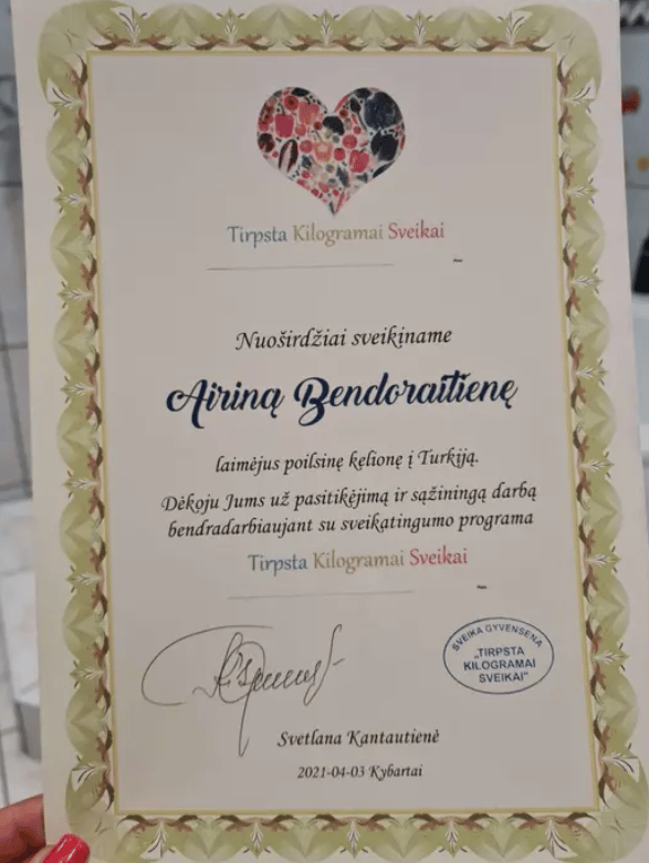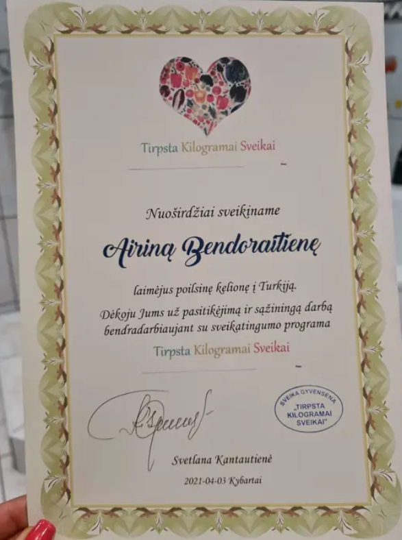 Taip , taip mano rankose 🤲🫶kelialapis i Druskininkus, " TIRPSTA KILOGRAMAI SVEIKAI" svajojau atsargiai ir tyliai,...vis eidama tuo pačiu keliu🚶♀️👣.... Dėkoju gyvenimui🥰 , kad sutikau savam kely Svetlaną Kantautienę !!!